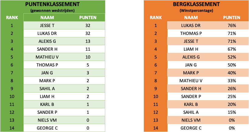 Sinds het seizoen 2022-2023 wordt er ook een regelmatigheidsklassement bijgehouden. Alle spelers kunnen hieraan meedoen. Er wordt zowel enkel als dubbel gespeeld.