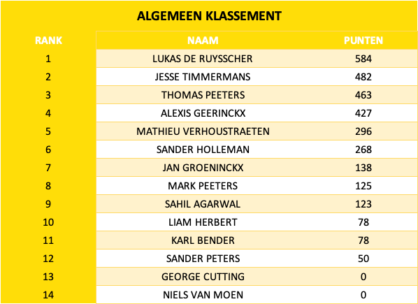 | 2023-2024 | LUKAS DE RUYSSCHER | JESSE TIMMERMANS & LUKAS DE RUYSSCHER | LUKAS DE RUYSSCHER |